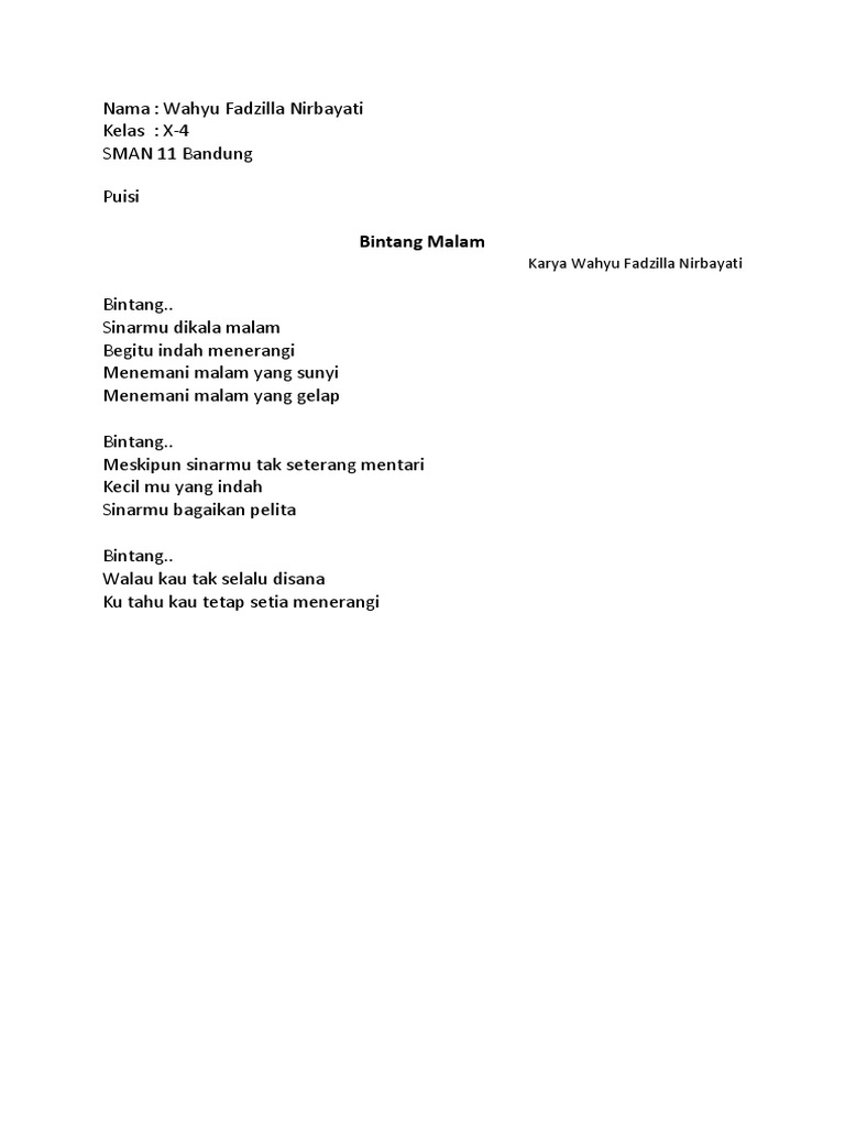 Bintang Malam setia seperti dirimu Tetap. LIRIK LAGU INDONESIA LAGU INTERNASIONAL.
